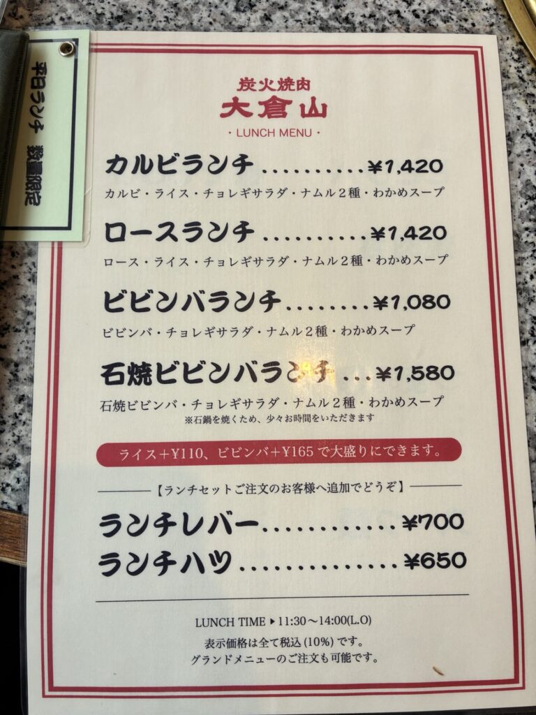 カルビランチ、ロースランチ、各¥1,420